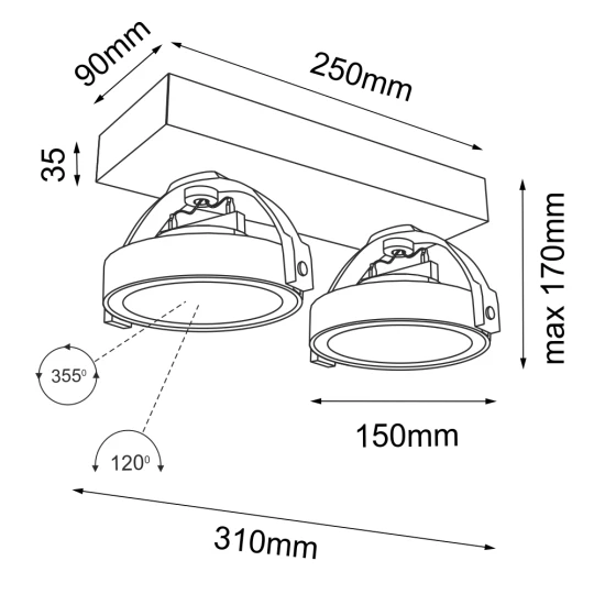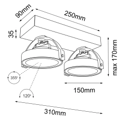 oprawa natynkowa - 2 x moduł LED CL 148 φ 46 mm (wbudowane)