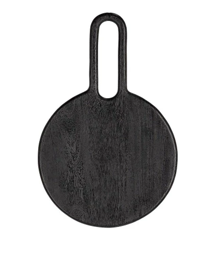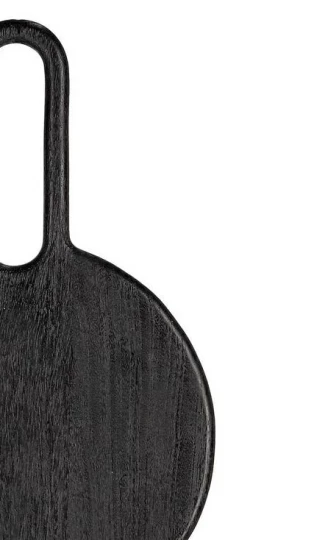 Deskę wykonano z drewna mango, które wyróżnia się trwałością i unikalnym, naturalnym usłojeniem widocznym pod czarnym wykończeniem.