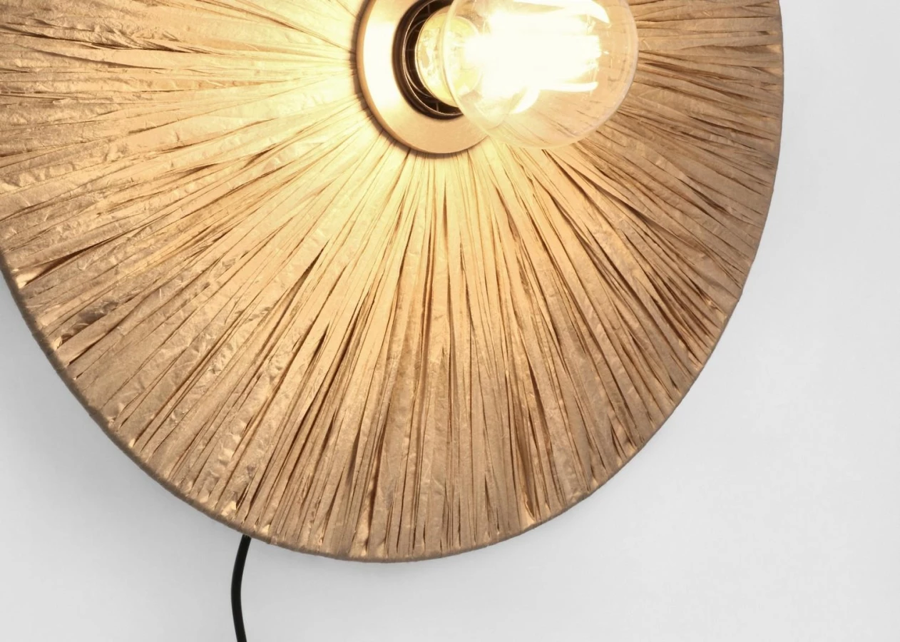 Wykonana z plecionej rafii oraz metalu, wprowadza do wnętrza ciepło i subtelną elegancję, doskonale komponując się ze stylem boho, skandynawskim czy rustykalnym.