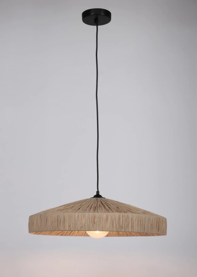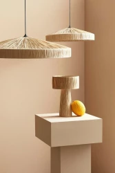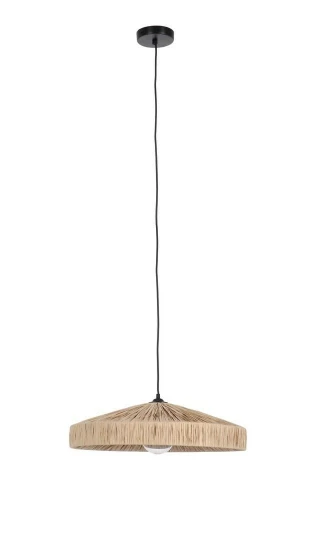 Wykonana z plecionej rafii w ciepłym, beżowym odcieniu, zachwyca organiczną strukturą i delikatnym, rozproszonym światłem.