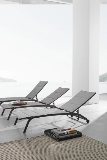 Leżak Cleopas oferuje pięciostopniową regulację oparcia, co pozwala na komfortowe ułożenie ciała w wybranej pozycji.