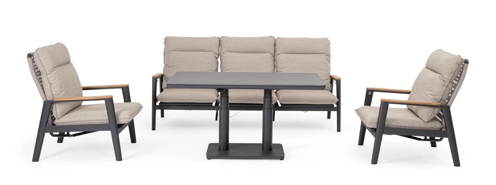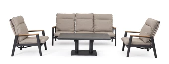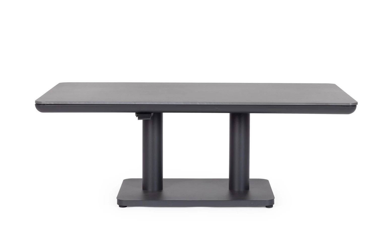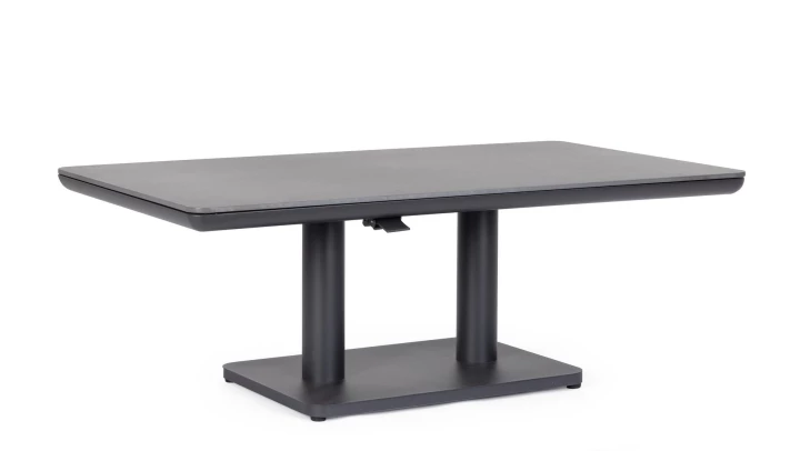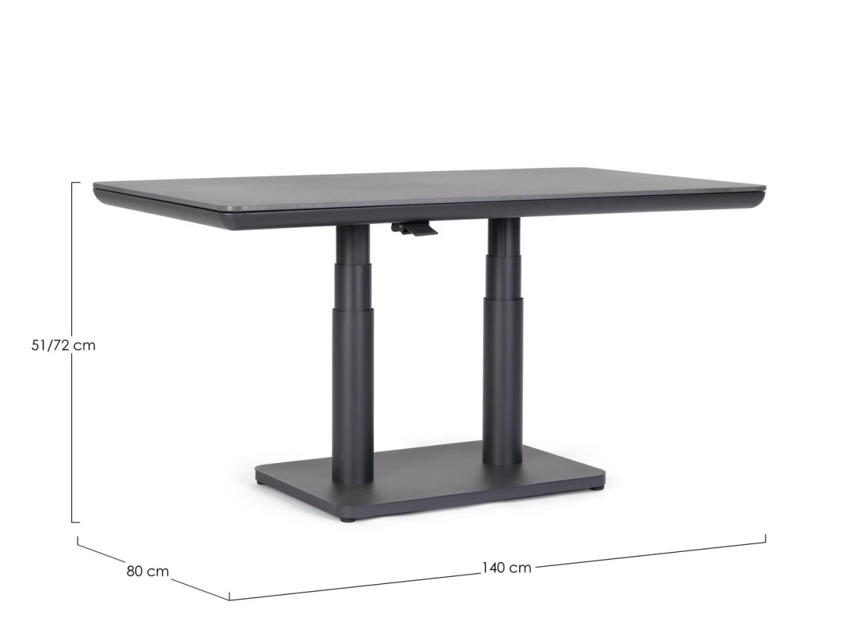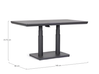 Regulowana wysokość za pomocą wygodnego uchwytu sprawia, że stół można dostosować do różnych potrzeb – od relaksu przy kawie po wygodne spożywanie posiłków. Elementy montażowe wykonane ze stali nierdzewnej gwarantują stabilność i długowieczność konstrukcji.