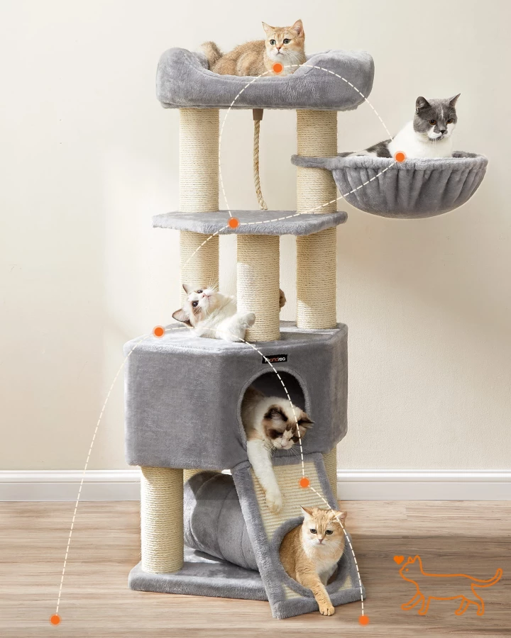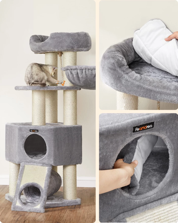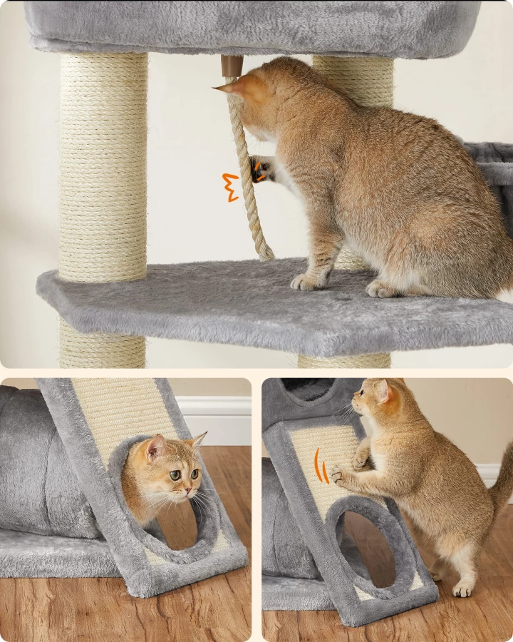 Dobrze zaprojektowany pasuje do każdego wnętrza zapewniając Twojemu kotu więcej przestrzeni do zabawy.