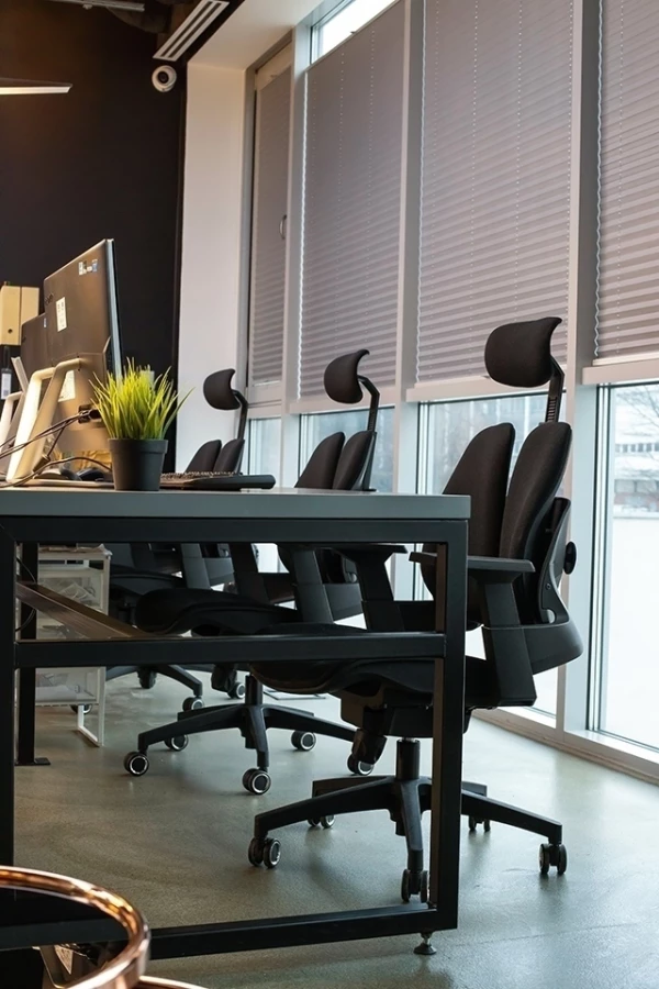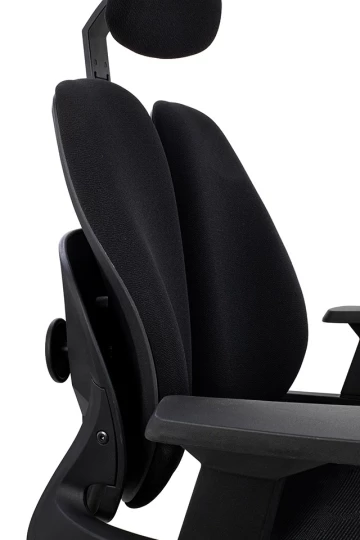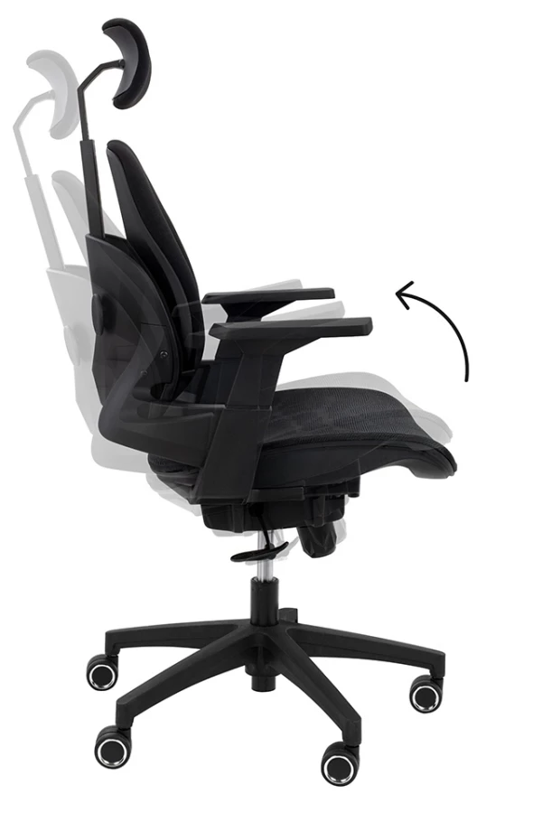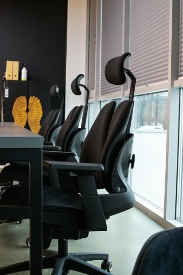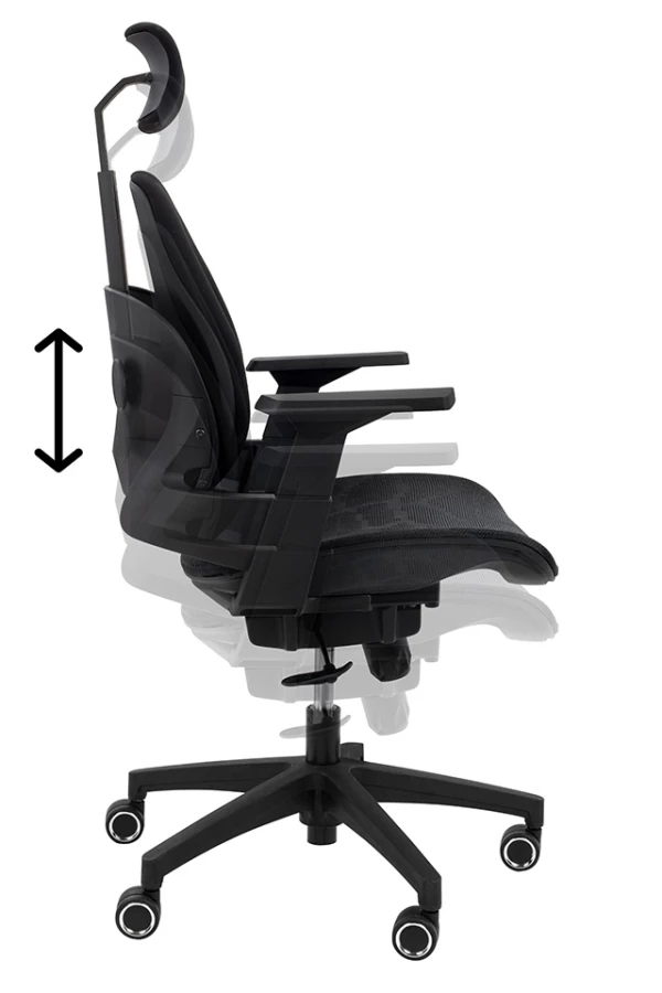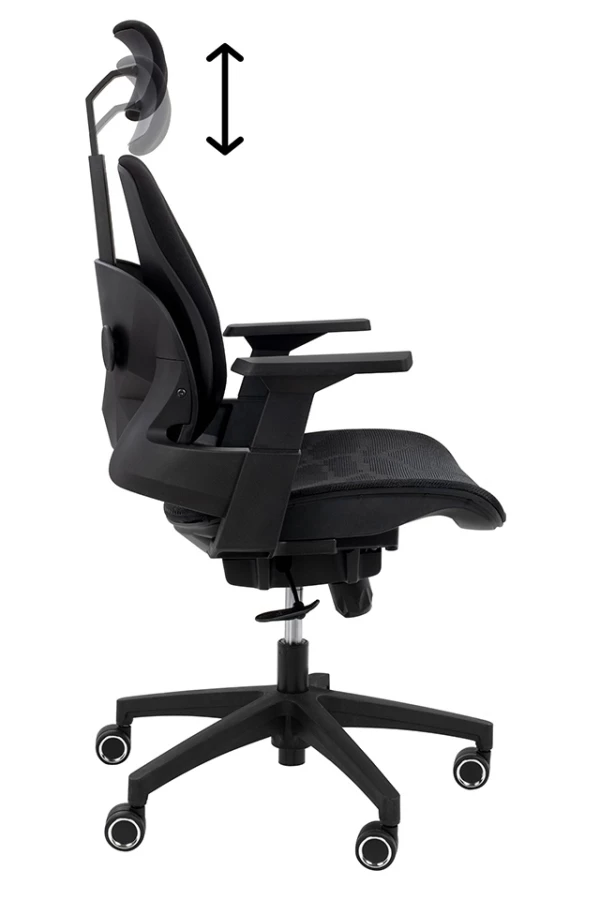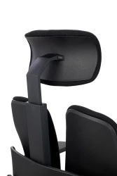 Wysoki, regulowany zagłówek zapewnia odpowiednie podparcie głowy podczas pracy i w chwilach relaksu.