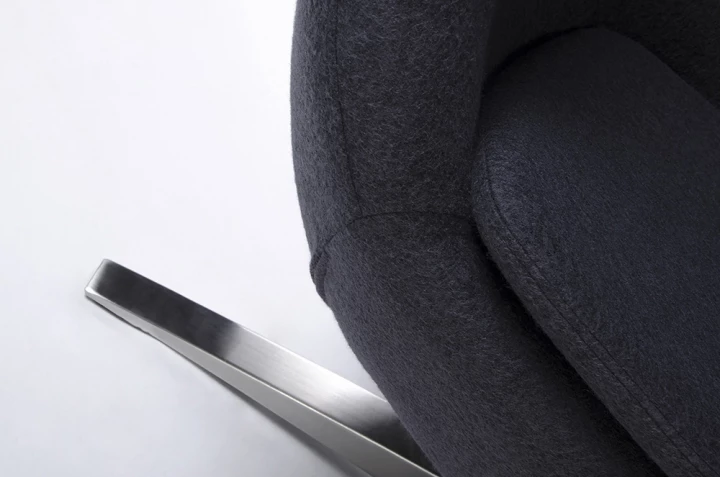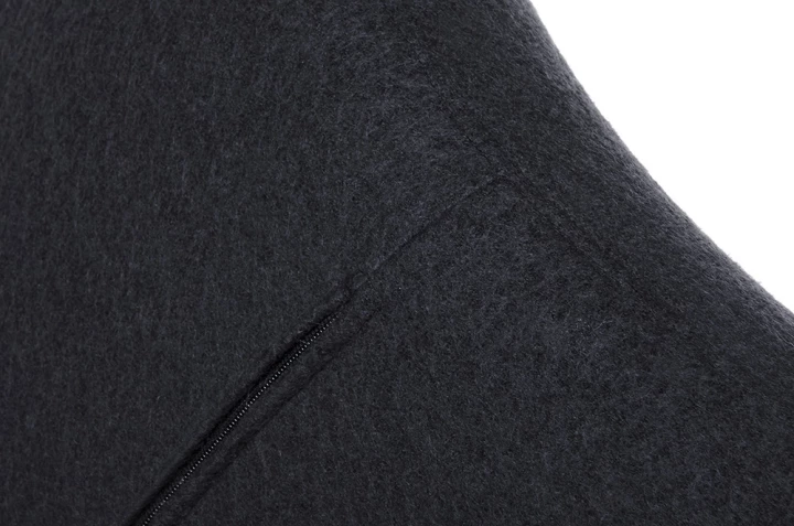 Ciekawym elementem, jest dekoracyjny suwak na plecach fotela. Fotel tapicerowany jest wełną kaszmirową (70% wełna naturalna, 30% poliester).