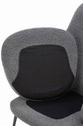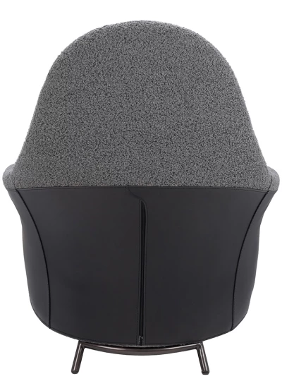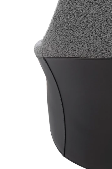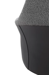 Oparcie i siedzisko obszyto elegancką, ciemnoszarą tkaniną, która tworzy efektowne zestawienie z czarną ekoskórą na tylnej części fotela.