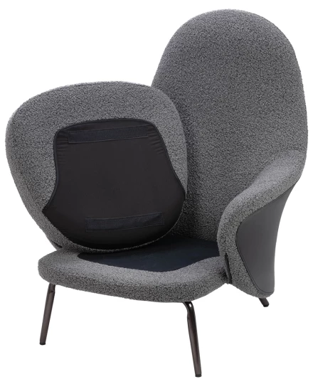 Fotel LOBBY TEDDY szary - stal nierdzewna, czarny opal