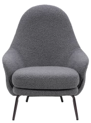 Fotel LOBBY TEDDY szary - stal, opal.