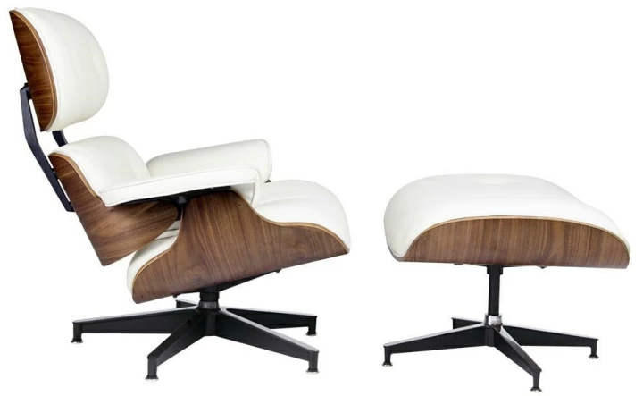 Fotel LOUNGE HM biały / orzech z podnóżkiem biały