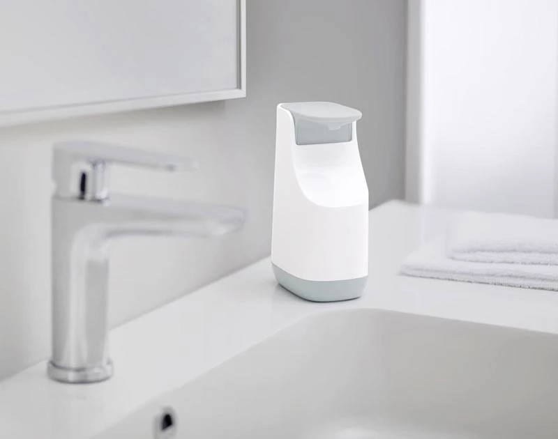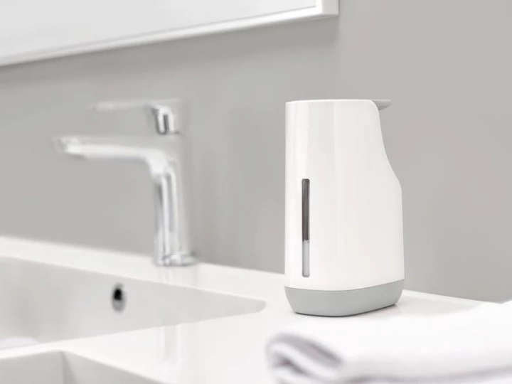 - minimalistyczny dozownik do mydła o pojemności 350 ml,