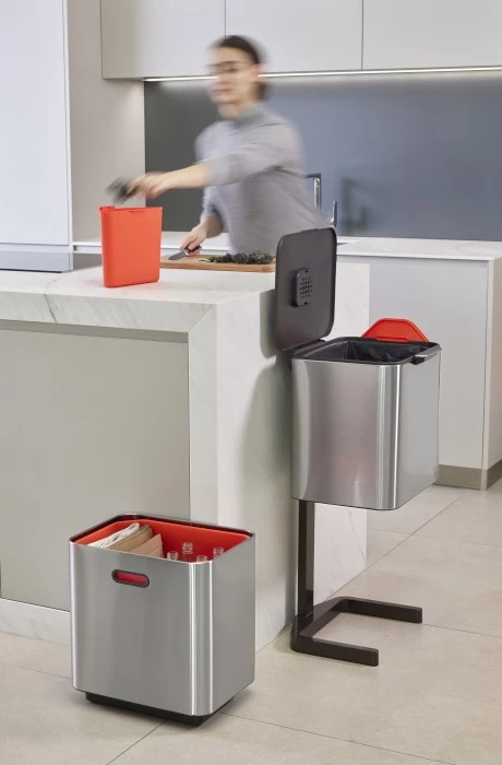 - wyjmowany pojemnik (4 l) na odpadki organiczne z pokrywką – można stawiać go na blacie, a pokrywkę zawiesić na krawędzi kosza,