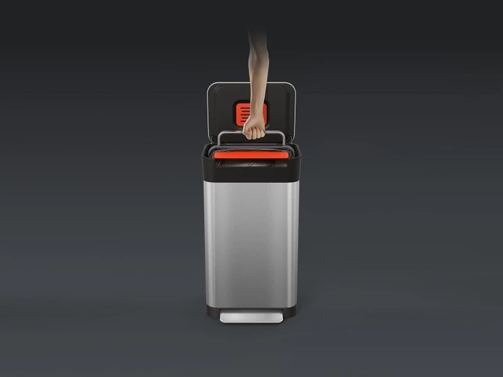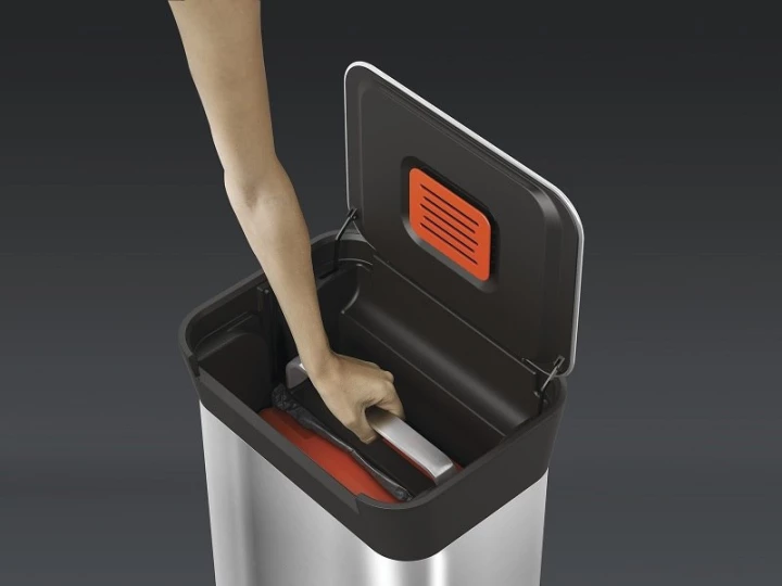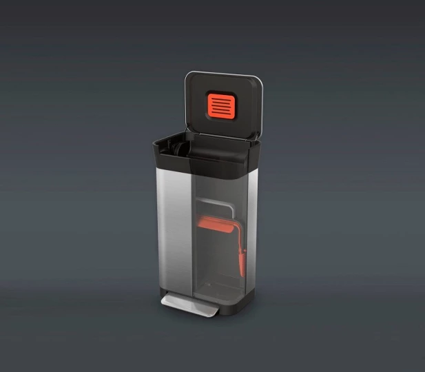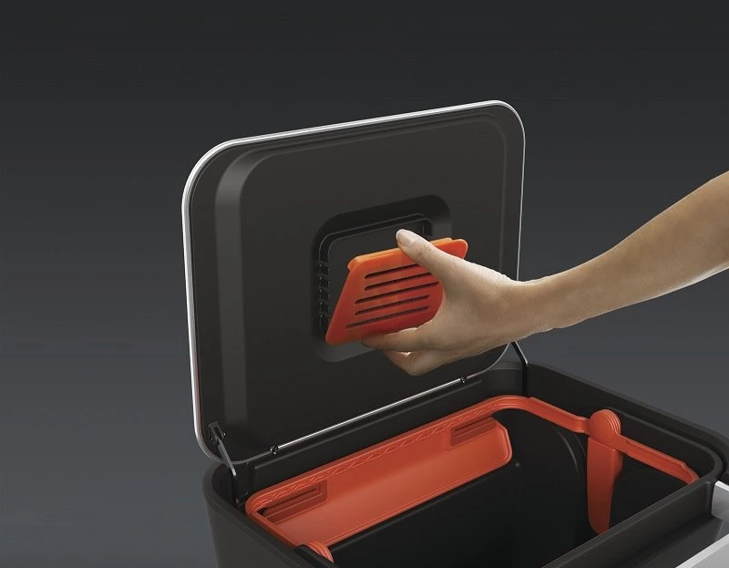 - kosz wyposażony w filtr węglowy neutralizujący zapachy, łatwy do wymiany, producent zaleca jego wymianę co 3 miesiące,