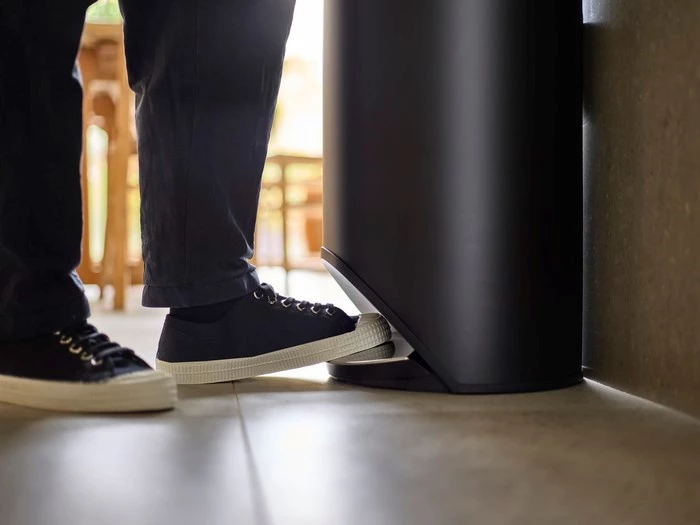 - otwierany przy pomocy systemu pedałowego, który nie wystaje z obudowy,