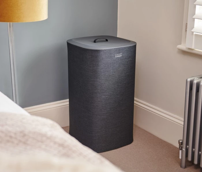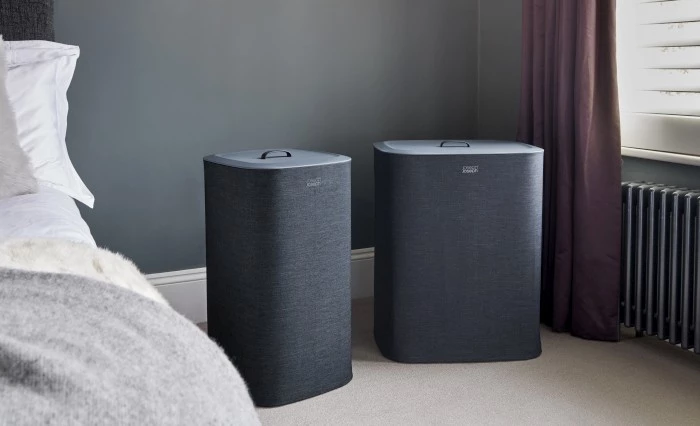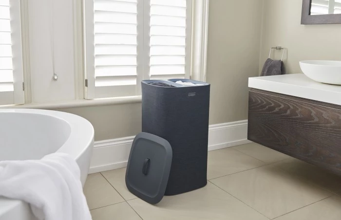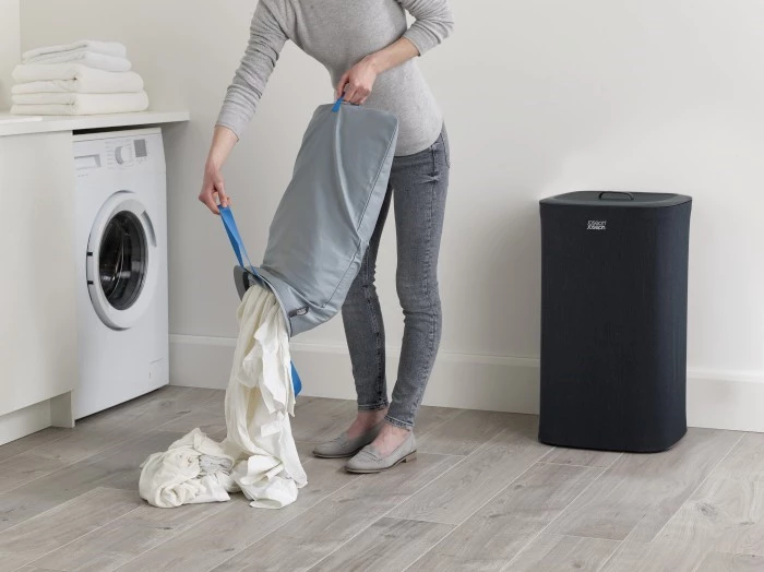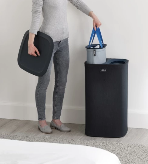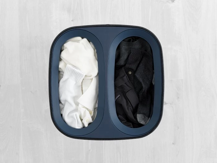 Nowoczesny kosz na pranie o pojemności całkowitej 60 l (2x po 30 l),
