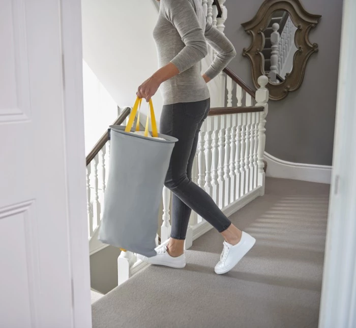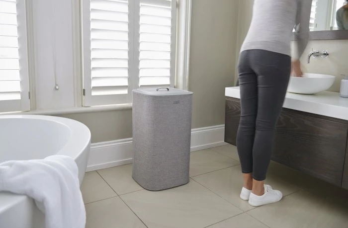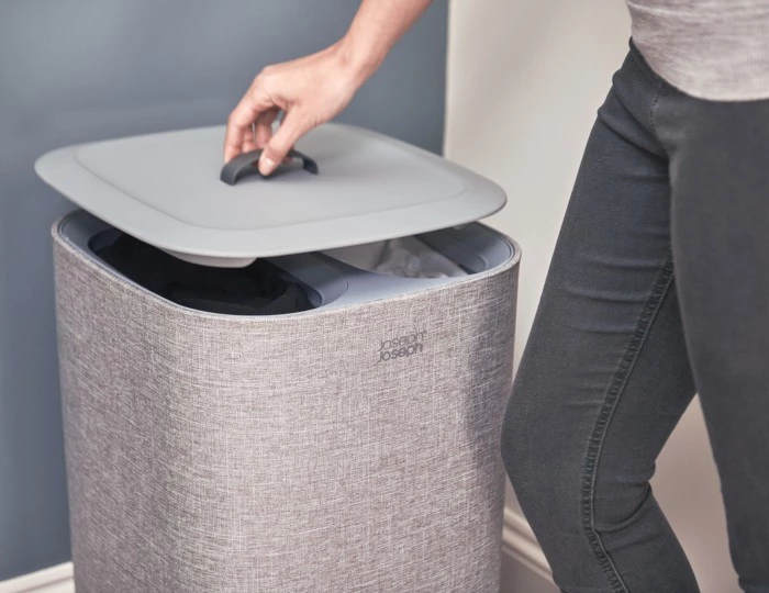 Nowoczesny kosz na pranie o pojemności całkowitej 60 l (2x po 30 l),
