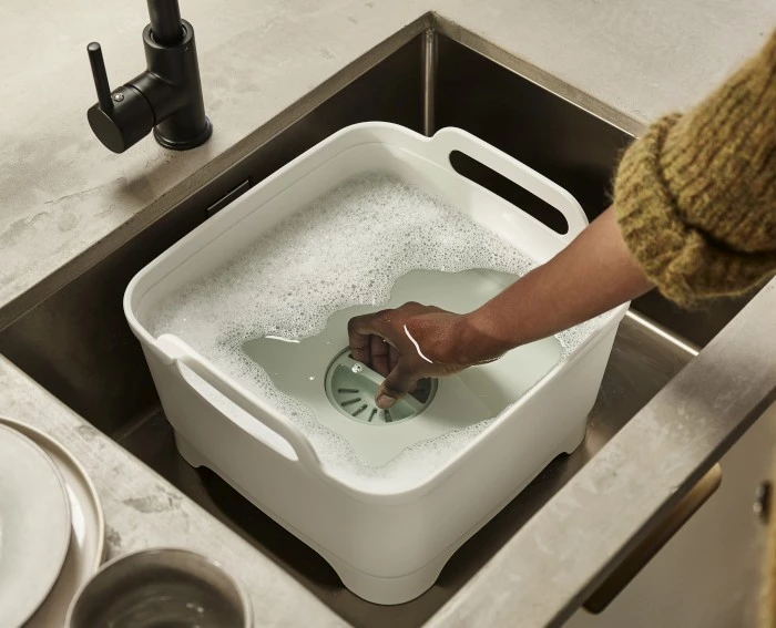 Miska z odpływem Wash&Drain prosta miska w niebanalnym wykonaniu, z dodatkowym odpływem. Miska została zaprojektowana z myślą o ułatwieniu prostych czynności jak płukanie czy mycie naczyń. Nie ma potrzeby podnoszenia ciężkiej miski, aby odlać wodę wystarczy przekręcić odpływ, aby woda wyciekła. Dodatkowo w misce znajduje się sitko przy odpływie dzięki czemu pozostałości z talerzy nie wpadną do zlewu.