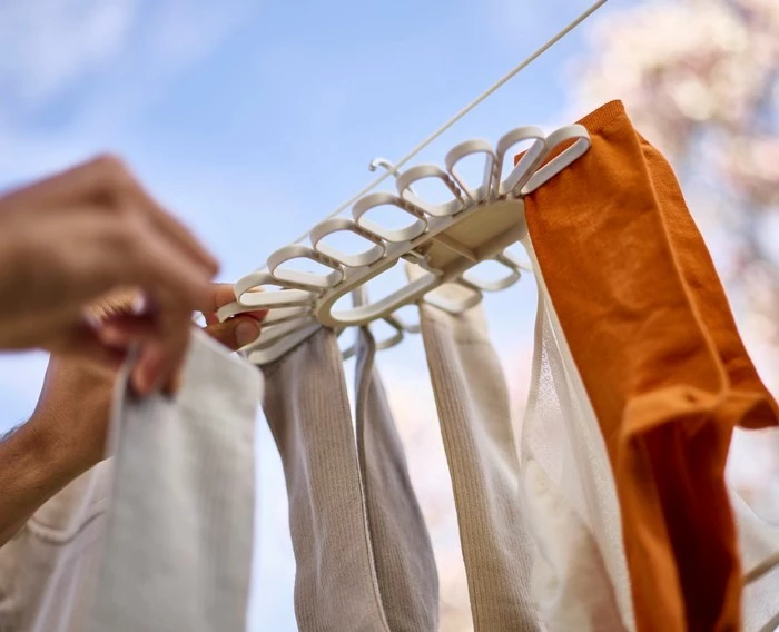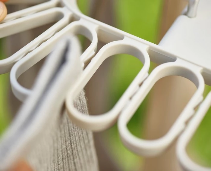 - posiada 2 aluminiowe haczyki do zawieszenia konstrukcji np. na drążku suszarki na pranie,