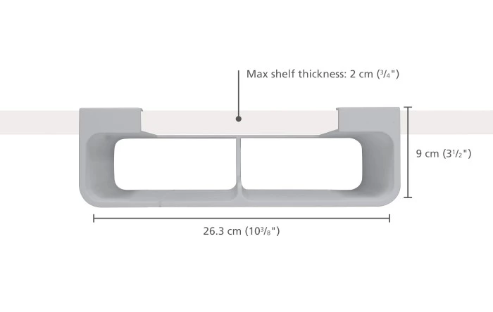 - przeznaczony do półek o szer. min. 27 cm oraz grubości 2 cm,