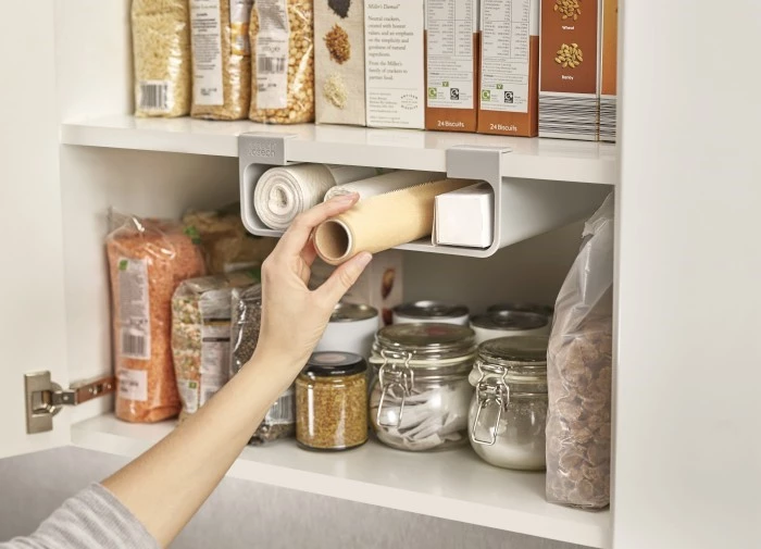 - organizer podpółkowy na rolki folii kuchennej i woreczki śniadaniowe,