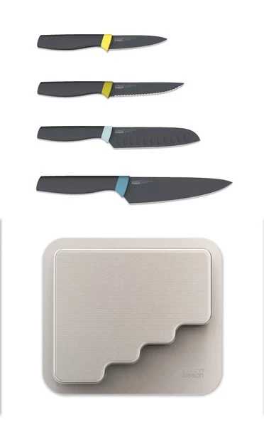 - w komplecie: nóż szefa, nóż santoku, nóż z ząbkami, nóż do warzyw,
