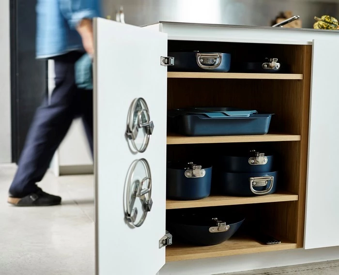 - ze składanym uchwytem - oszczędza do 50% miejsca w szafce / szufladzie,