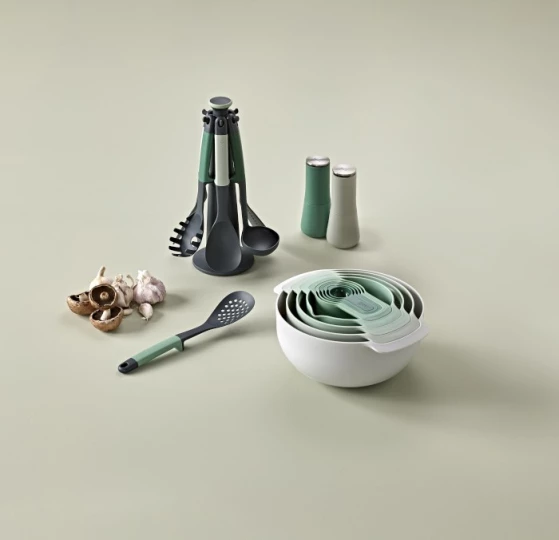 - zestaw narzędzi: łyżka do spaghetti, chochelka, łopatka perforowana, łyżka do mieszania, łyżka cedzakowa, łopatka na obrotowym stojaku,
