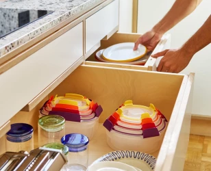 - łatwo je przechowywać jeden w drugim, pokrywki również są łączone razem,
