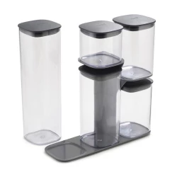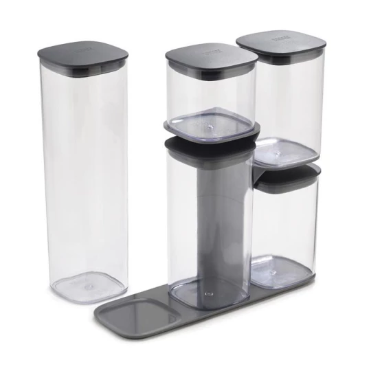 - zestaw 5 pojemników z uszczelkami do przechowywania produktów sypkich,