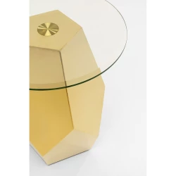 Geometryczna, złota podstawa przyciąga wzrok i dodaje wnętrzu nowoczesnej elegancji.