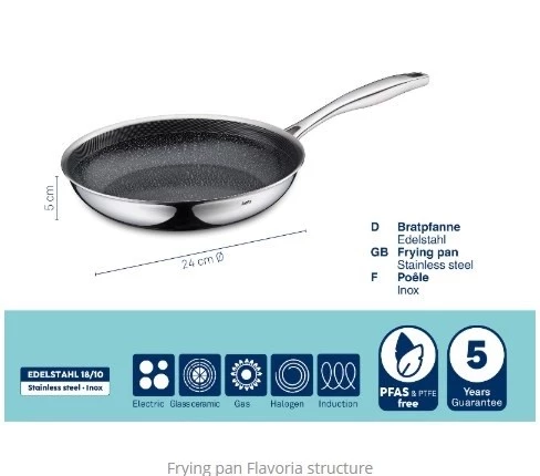 - w środku posiada strukturalną powłokę nieprzywieralną wolną od PFAS i PTFE, chroniącą przygotowywane potrawy od przywierania i przypalenia,