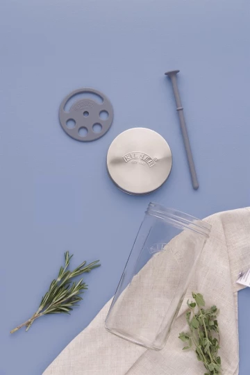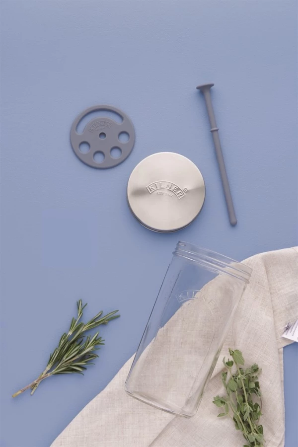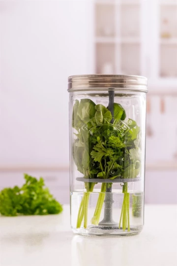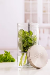 - w komplecie: szklany słoik (1 l), pokrywka ze stali nierdzewnej, silikonowy element podtrzymujący zioła, instrukcja z przepisami,