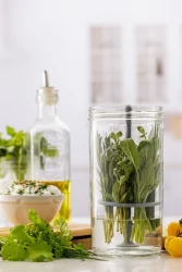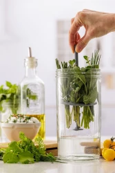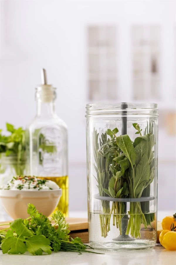 - do przechowywania łodyg z ziołami w wodzie w pozycji pionowej,