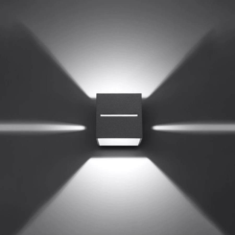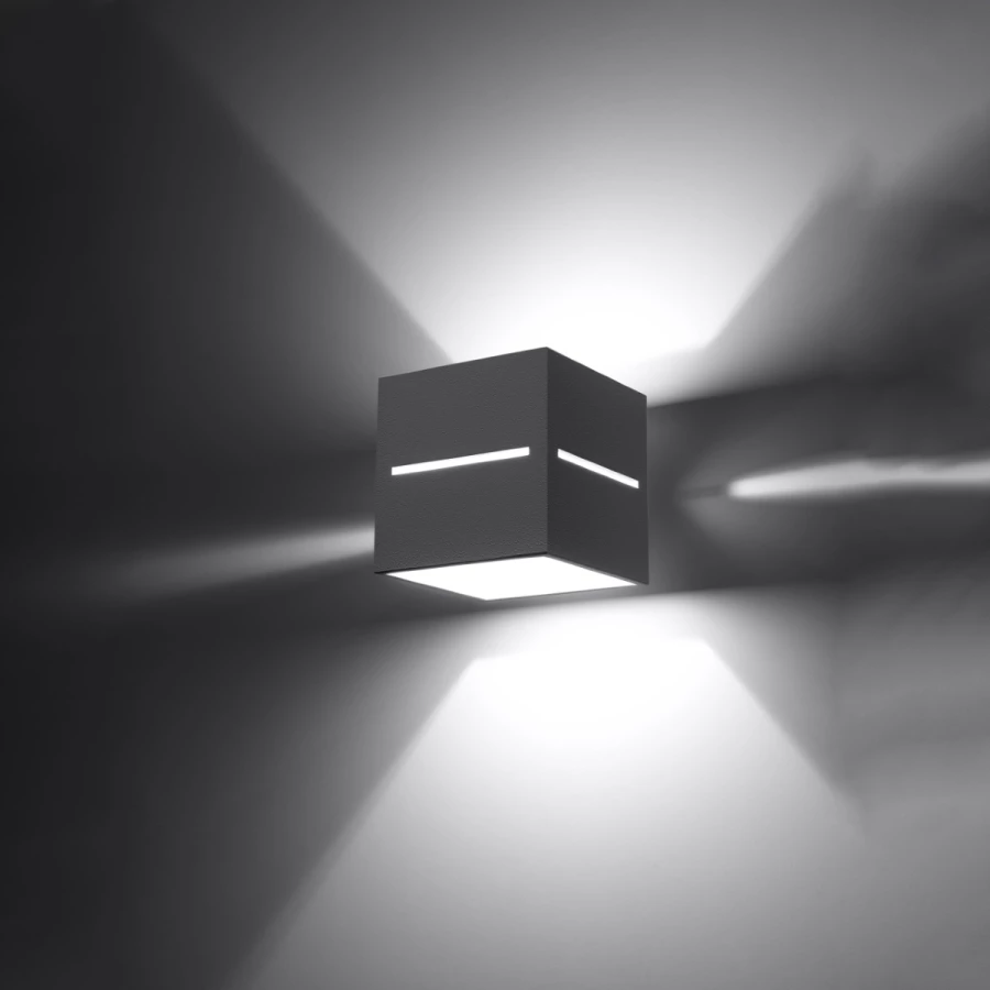 Światło rozchodzi się z kinkietu LOBO w górę i w dół oraz sączy się przez liniową perforację w bocznych ścianach klosza. Gdy go zaświecisz, zamienisz całą ścianę w efektowną dekorację.