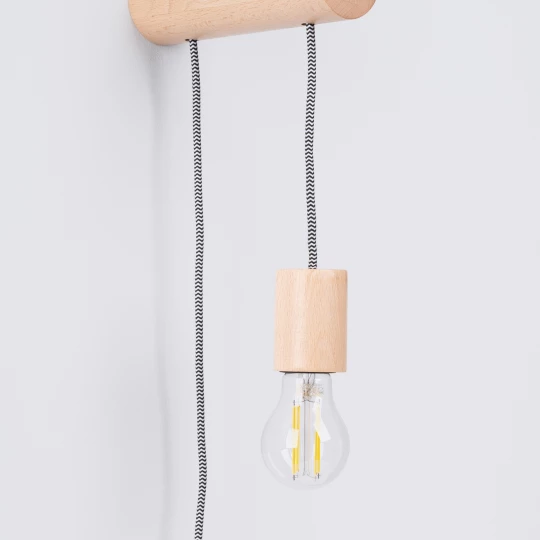 Kinkiet NIMBI to idealne połączenie nowoczesnego designu i naturalnych materiałów. Drewniana obudowa, w połączeniu z przewodem w oplocie, tworzy wyjątkowy efekt wizualny, który idealnie wkomponuje się zarówno w nowoczesne, jak i skandynawskie wnętrza.