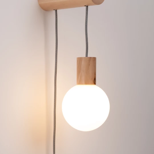 Kinkiet NIMBI to perfekcyjne połączenie prostej formy z naturalnym drewnem, które wprowadza ciepły i przytulny klimat do każdego wnętrza. Jej minimalistyczny design, wzbogacony o drewniany akcent i okrągły klosz, sprawia, że idealnie odnajdzie się w przestrzeniach inspirowanych stylem skandynawskim, boho czy rustykalnym.