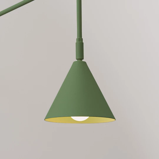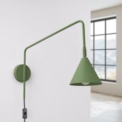 NOX to nowoczesny kinkiet o wyjątkowo lekkiej formie i wyraźnym charakterze. Prosty, metalowy wysięgnik zakończony geometrycznym, stożkowym kloszem tworzy intrygującą kompozycję, która świetnie sprawdzi się w nowoczesnych, skandynawskich czy industrialnych aranżacjach.