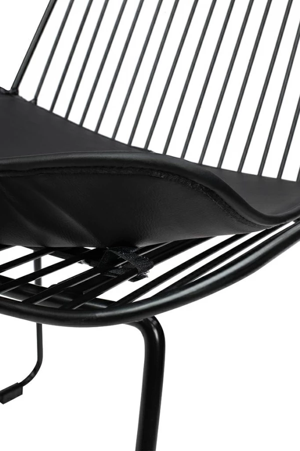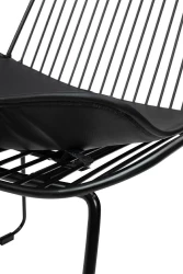 Piankowa poduszka z czarnej ekoskóry nieco przełamuje surowość stalowej konstrukcji.