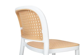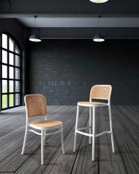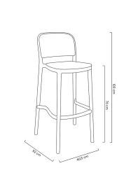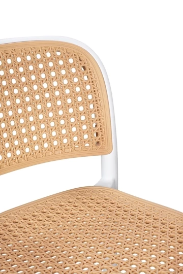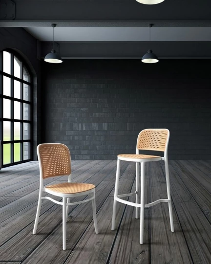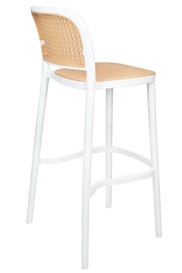 Zaprojektowane na wzór mebla ogrodowego. Ażurowe siedzisko i oparcie przypominające rattan powodują, że hoker nabiera lekkości. Ponadczasowe połączenie prostoty i podmiejskiego stylu kojarzy się z latem i wolnym czasem. Możliwość sztaplowania jest świetnym rozwiązaniem, aby zaoszczędzić przestrzeń i pozwala na praktyczne przechowywanie produktu. Krzesło barowe w całości wykonane jest z polipropylenu.