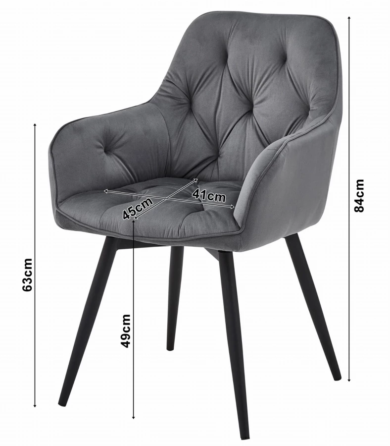 Krzesło LAGO Aksamit - szare / nogi czarne x 1