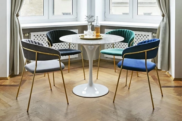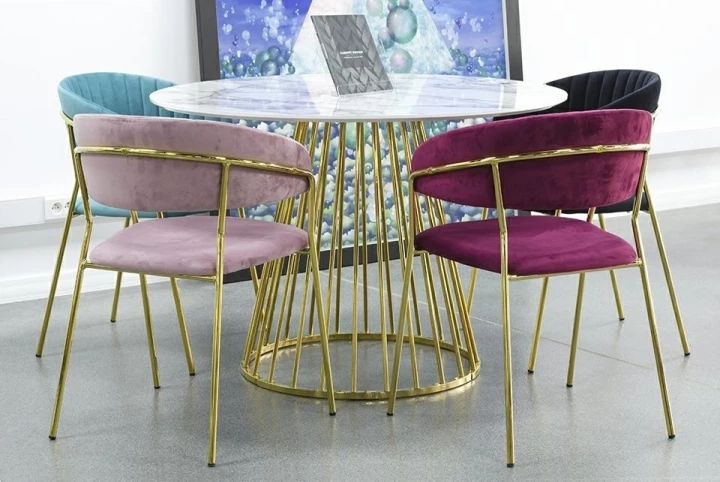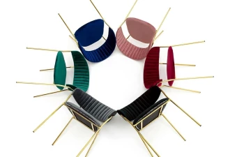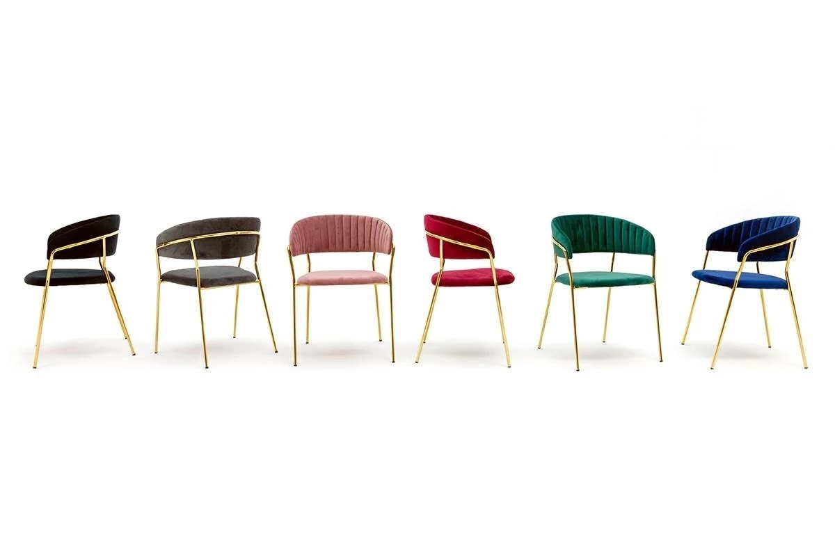 Miękkie siedzisko oraz oparcie pokryte aksamitnym welurem gwarantują maksymalny komfort i zachwycają subtelnym, szlachetnym połyskiem.