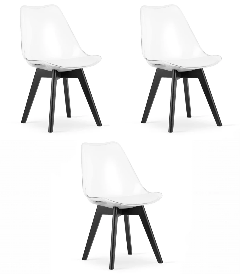 - krzesła TRANSPARENTNE z białą poduszką i bukowymi nogami w kolorze CZARNYM