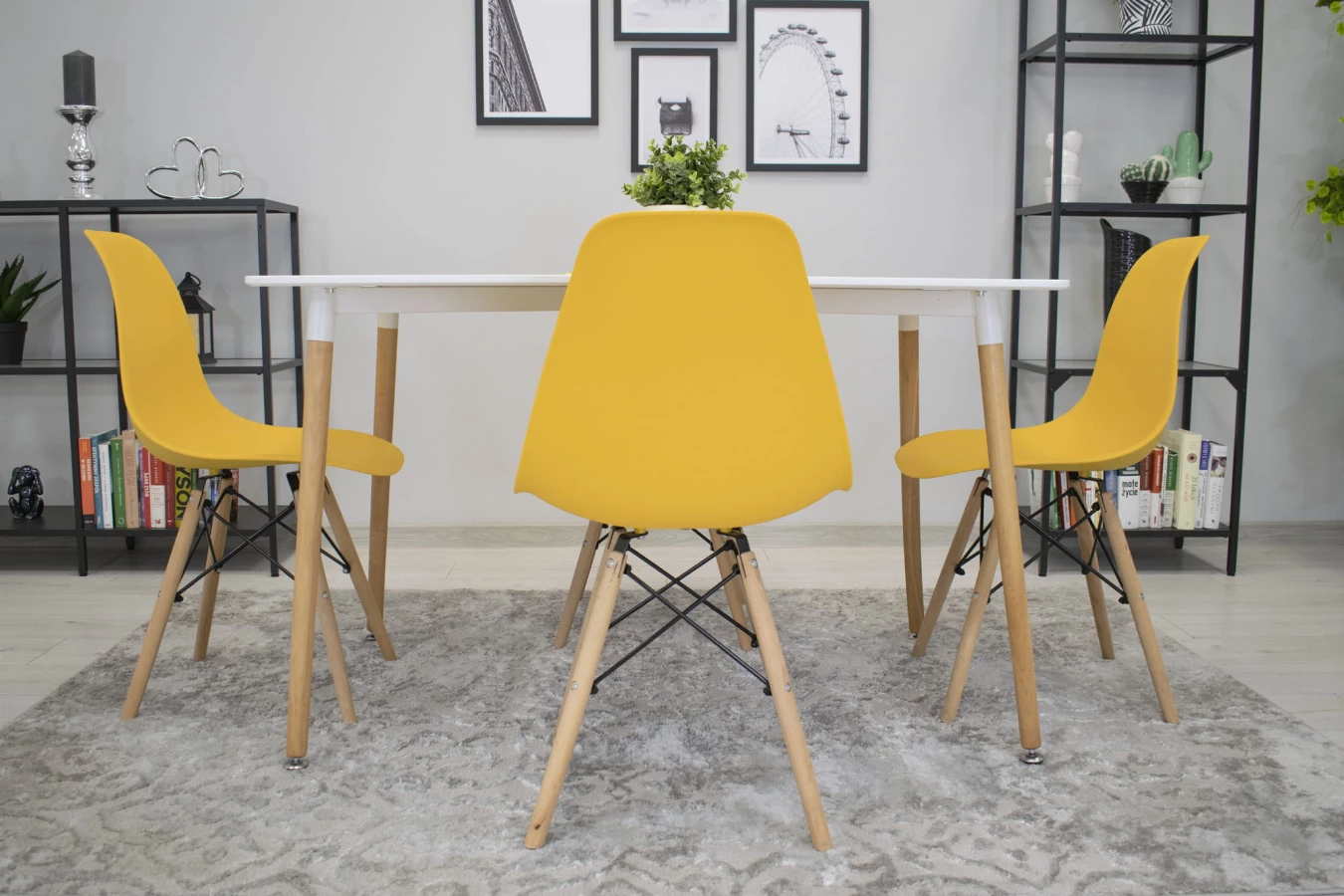 - krzesła dostępne są w kolorze MUSZTARDY Z NOGAMI W KOLORZE NATURALNYM