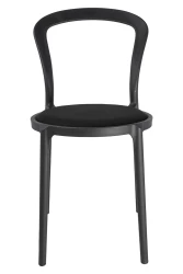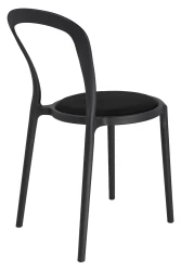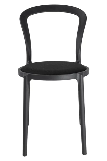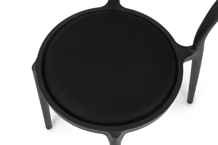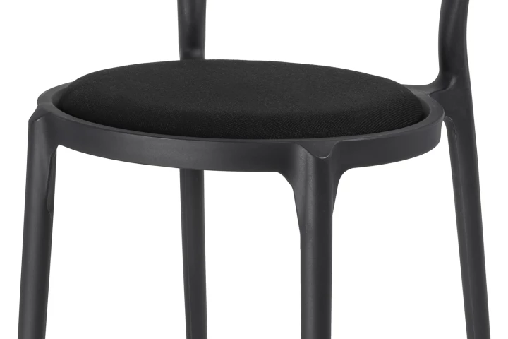 Krzesło zostało w całości wykonane z wytrzymałego polipropylenu i wyposażone w miękką, czarną poduszkę, która zapewnia komfort siedzenia.