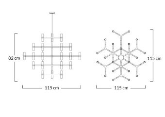 MOOSEE lampa Atomic Grande została wykonana z metalu w kolorze złotym.