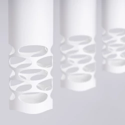 Lampa LIRO zachwyca prostą formą, a jednocześnie przyciąga wzrok charakterystycznym, dekoracyjnym wycięciem. Falujące kształty u dołu klosza sprawiają, że światło wydobywające się z wnętrza zyskuje miękkość i subtelny charakter.