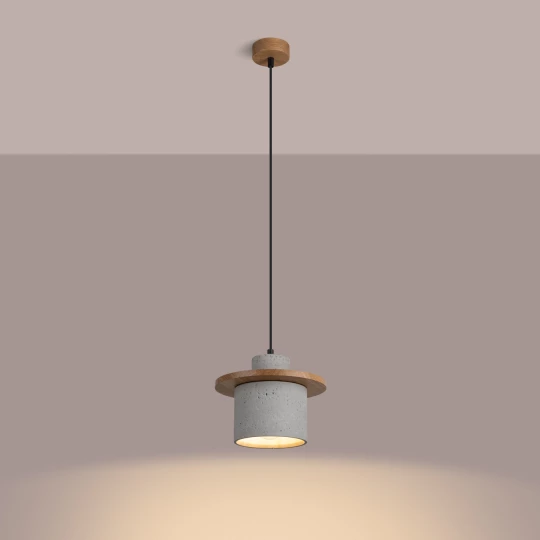 MAB BETON to wyjątkowa lampa wisząca, która łączy dwa naturalne materiały: chłodny beton i ciepłe drewno. Dzięki temu staje się nie tylko źródłem światła, ale też wyrazistym elementem dekoracyjnym. Jej nowoczesna, cylindryczna forma podkreślona została poziomym drewnianym akcentem, który dodaje jej lekkości i wizualnej równowagi.