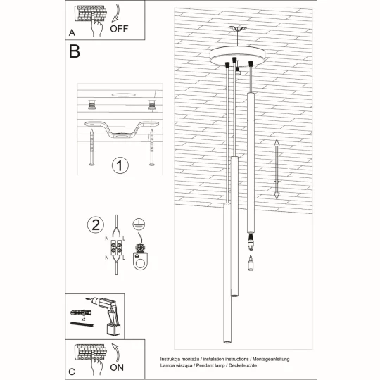Powieś lampę PASTELO na idealnej wysokości. Bez względu na to, czy chcesz doświetlić wysoką klatkę schodową, czy też potrzebujesz lampy wiszącej do salonu, regulowana długość przewodu pozwoli Ci osiągnąć perfekcyjny efekt.