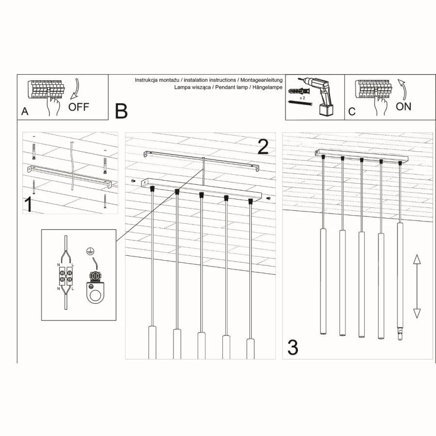Powieś lampę PASTELO na idealnej wysokości. Bez względu na to, czy chcesz doświetlić wysoką klatkę schodową, czy też potrzebujesz lampy wiszącej do salonu, regulowana długość przewodu pozwoli Ci osiągnąć perfekcyjny efekt.