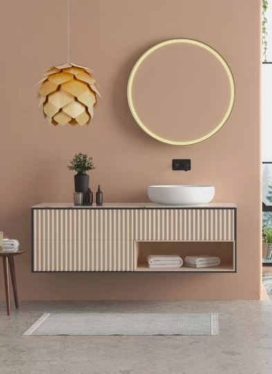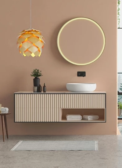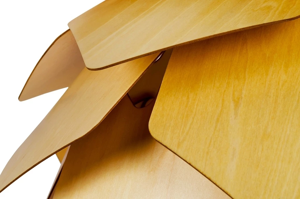 Oprawa kształtem przypomina szyszkę, co wprowadza do aranżacji leśny klimat.