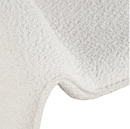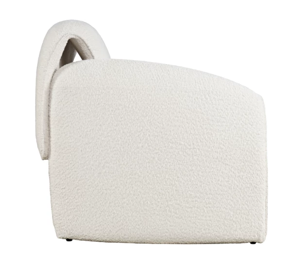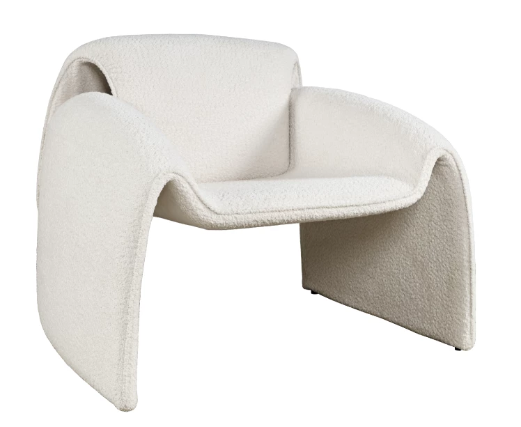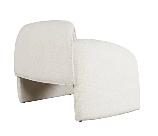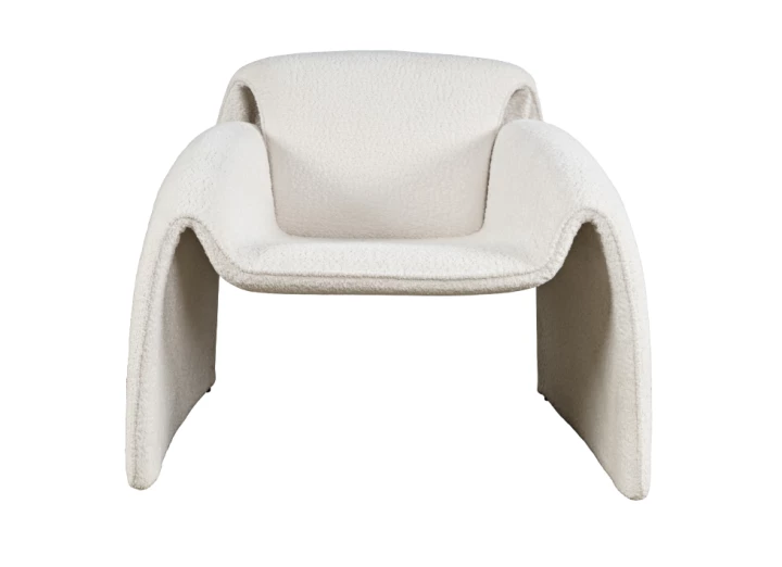 Nowoczesny fotel tapicerowany w kolorze złamanej bieli. Opływowy kształt ramy emanuje miękkością i harmonią. Tkanina boucle w połączeniu z minimalistyczną formą będzie idealnym akcentem w każdym wnętrzu.
